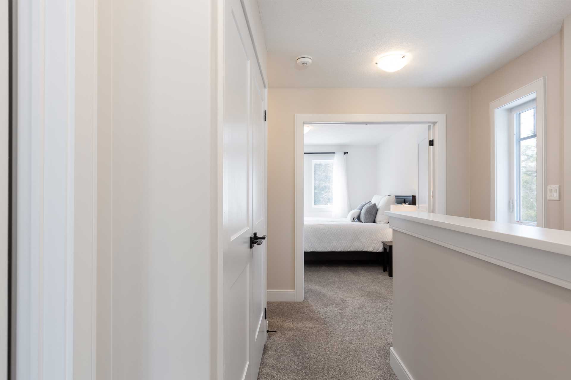 The second level features a generous master with forest views, a walk-in closet and 3PC ensuite with glass shower, plus two additional guest bedrooms (each with double closets), plus one of them featuring a lovely vaulted ceiling and offering a multi purpose functionality – perfect for a home office space. Bonus is the laundry with folding countertop and excellent storage.
